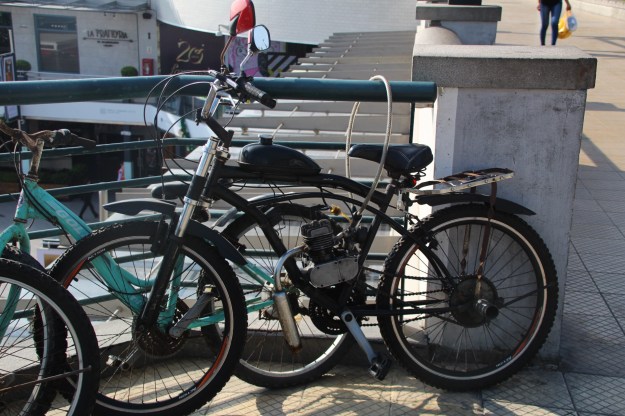 Mehrfach habe ich auch solche coolen Hilfsmotoren für Fahrräder gesehen.
