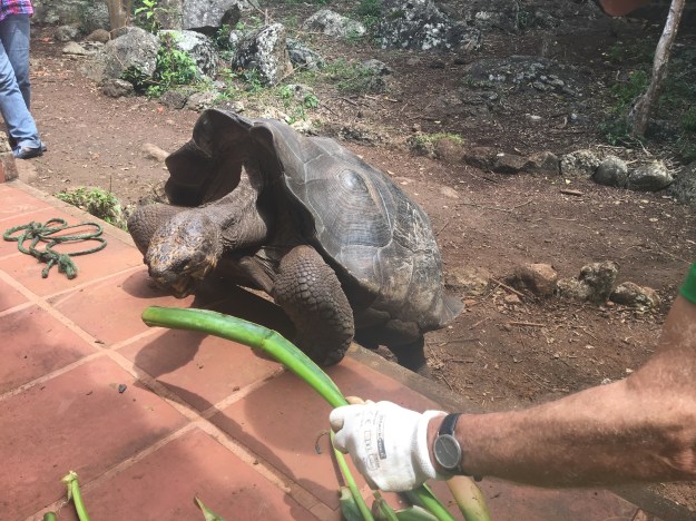 Dann waren wir noch ein letztes Mal bei den riesigen Schildkröten im Reservat, hier leben 143 Exemplare. Im Norden der Insel gibt es ein geschütztes Gebiet, in dem die Schildkröten wild leben, zumindest als Tourist kommt man dort nur per Boot und mit Guide in die Nähe. Dort wird ein Teil der im Reservat gezüchteten Tiere hingebracht. Immer noch sind die Giganten in Gefahr, erst im September verschwanden über 100 Tiere von der unbewohnten Insel Isabela, wahrscheinlich gestohlen von der Besatzung japanischer oder chinesischer Boote.