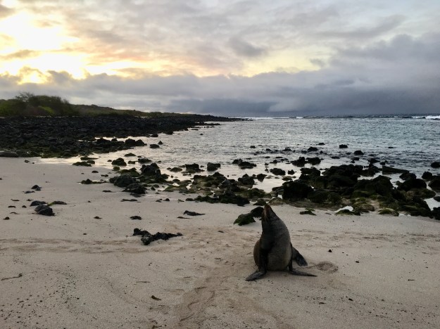 Ein zweites und letztes Mal wurden wir um 5 Uhr morgens abgeholt, um Sealions an unserem Lieblingsstrand zu zählen. Unser Guide gab zu, dass uns auf diese Art vermittelt werden soll, welche Arbeiten nötig sind, um das Überleben einer Art zu sichern, die Sealions auf Galapagos sind einzigartig.