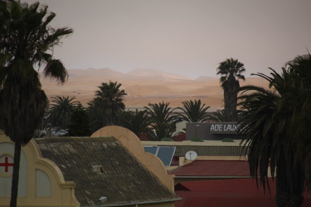 Am 30.09. haben Katha und ich uns nach den komplizierten Reiseverläufen, bei denen erstaunlicherweise alles fast bis auf die Minute geklappt hat, in Windhoek am Airport wiedergetroffen. Bei Namibia fällt ja jedem Bildungsbürger (und jede Bildungsbürgerin selbstverständlich auch) als erstes ein, dass es mal deutsche Kolonie war und dass insb. in Windhoek noch sehr viele Erinnerungen an diese Zeit bestehen. Das stimmt auch, trotzdem haben wir schon bei der Abholung des Mietwagens gemerkt, und dieser Eindruck sollte sich im Laufe der ersten Tage bestätigen, dass wir nun wirklich in Afrika sind. Ohne jetzt mich und die Leserschaft mit langen Schilderungen langweilen zu wollen: Nachdem wir längere Zeit gewartet haben, habe ich den hilflosen Jungen, der uns das nicht vorhandene Auto übergeben sollte, mit schärfer werdender Stimme auf die zunehmende Dunkelheit hingewiesen, woraufhin der Chef geholt wurde. Dieser stellte fest, dass die Fertigstellung unseres Autos (nein, es wurde nicht neu gebaut, vielmehr war wohl eine Generalüberholung nötig) noch lange dauern würde. Uns wurde dann das erstbeste Auto auf dem Hof in die Hand gedrückt, mit der Versicherung, dass spätestens in Swakopmund dieses Gefährt gegen das von uns bestellte (und bezahlte) 4-Wheel-Drive ausgetauscht werde. John, so heißt der Chef, gab uns seine sämtlichen Kontaktdaten und wir warten nun … so etwas wäre in Kapstadt ebenso undenkbar gewesen wie in Deutschland. Fast noch schlimmer war, dass er lachend fragte, warum die älteren Deutschen die Ziffer 1 immer so komisch schrieben … mit älterer Deutscher meinte er … wen wohl?! John hat damit viel von seinem Charme spontan verloren!
