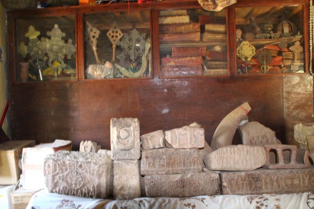 Es gab auch eine angegliederte Kirche mit kleinem Museum und ungeheuer alten Bücher mit biblischen Themen: