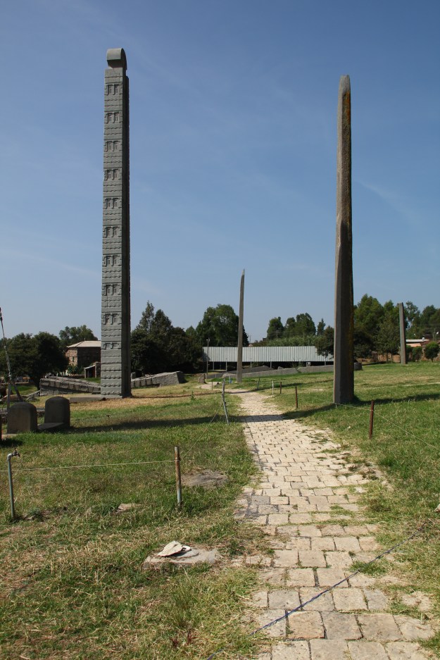 Die Stelen haben die Funktion von Grabsteinen für frühere Herrscher, sie und die dazugehörigen Gräber stammen zum Teil aus der vorchristlichen und zum Teil aus der christlichen Zeit Aksums (die christliche Zeit begann ca. 345 n. Chr.), sind also uralt und zeugen von einer frühen Hochkultur hier in Äthiopien. Nebenbei war Aksum das dritte Land weltweit, das das Christentum als Staatsreligion eingeführt hat.