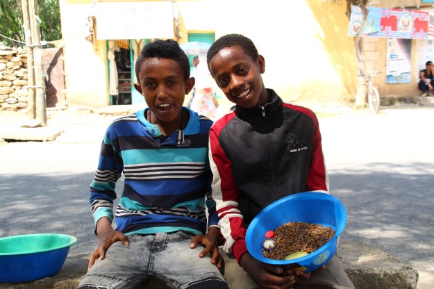 Die beiden Jungen haben Maiskörner verkauft, die auf irgendeine Art zubereitet waren. Ich habe ihnen eine Handvoll abgenommen und (freiwillig) so viel dafür bezahlt, dass ich sie gerade davon abhalten konnte, die ganze Schüssel in meine Handtasche zu kippen. Deswegen waren sie auch zu dem Foto bereit.