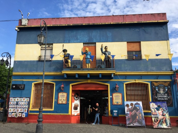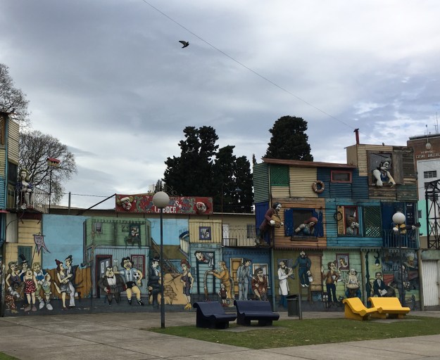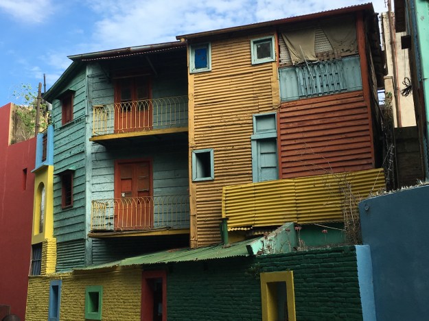 Wir sind nur zu viert und ich finde das Tempo ganz schön hoch, fünf Unterrichtsstunden pro Tag sind auch nicht ohne, hoffentlich hilft´s. Danach bin ich in das vielbesuchte Stadtviertel La Boca aufgebrochen und da das Busfahren hier recht eigenartig ist, die Haltestellen teilweise nur an einem winzigen Hinweis auf irgendeinem Haus erkennbar sind und die Busse ohne Struktur und Plan fahren, bin ich aus Versehen die gesamte Strecke gelaufen. Der Grund für den touristischen Besucherandrang ist Caminito, eine Ansammlung von malerischen (im wahrsten Sinne des Wortes) Häusern, die in Billigbauweise unter Verwendung von Wellblech von italienischen Seefahrern gebaut und gestaltet wurden.