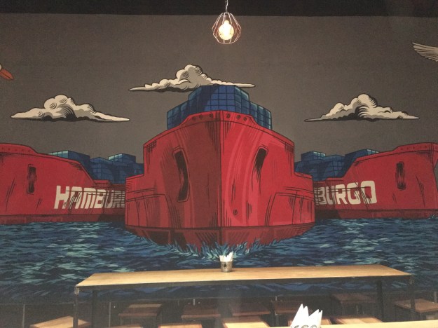 An dem hohen Tisch im Vordergrund entsteht grade dieser Blogbeitrag. Außer einem Spaziergang durch das Viertel hier wird heute nicht mehr viel passieren.