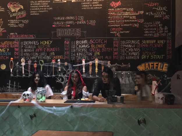 Eigentlich dachte ich, dass es von diesem Tag gar keine Bilder gibt, weil ich wirklich mal einen ruhigen Nachmittag eingelegt habe – abgesehen davon, dass ich mich auf dem Weg zur immer noch neuen Unterkunft ziemlich verlaufen habe, aber das ist bei mir nicht weiter erwähnenswert. Morgen und übermorgen steht nachmittags und abends viel an und Samstag ist Abreise nach Mendoza, deshalb fand ich einen Chilltag angebracht, mit Wäsche waschen, Hausaufgaben für Spanisch erledigen etc.. Allerdings wird in der dem Hostel angeschlossenen öffentlichen und anscheinend sehr gut angenommenen Kneipe heftigst Halloween zelebriert, davon nun doch ein paar Bilder.