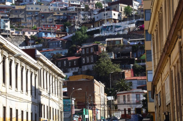 Danach wollte ich der Stadt und der Hitze entfliehen und mir unbedingt noch Valparaiso anschauen, sehr einfach von Santiago aus mit öffentlich Verkehrsmitteln zu erreichen, aber zwei Stunden ist man damit schon beschäftigt – eine Strecke. Auch hier wieder: Nachdem ein älterer Herr mich die ganze angeglotzt hat und ich schon misstrauisch wurde, kam er zu mir und legte mir eindringlich nahe, den Stadtplan, den ich in der Hand hielt, in die Tasche zu packen, ansonsten könne jeder erkennen, dass ich Touristin sei und das sei gefährlich. In Buenos Aires ist es mir auch passiert, dass ich das Handy zur Navigation genutzt habe und von einer jungen Frau angesprochen wurde, dass ich es ganz schnell wegpacken solle. Aber wie soll ich denn klarkommen, so ohne meine deutlich besser orientierte Familie – durchweg alle schauen einmal auf den Plan und wissen dann den Weg, ich nicht!