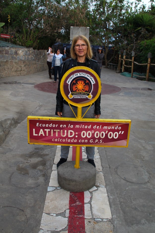 Dann ging es weiter zum sog. Mittelpunkt der Welt, warum dieser ausgerechnet am diesem Punkt in Ecuador liegen soll und nicht in Uganda, Kenia oder sonstwelchen Ländern, durch die ebenfalls der Äquator verläuft, hat sich mir nicht erschlossen. Aber hier ist wohl die höchste Stelle der Äquatorlinie. Es gab eine Führung mit einer Einführung über das Land und seine Bevölkerung im Allgemeinen und einigen netten Experimenten, z.B. über das Verhalten der Wasserströmung auf und neben der Äquatorlinie.