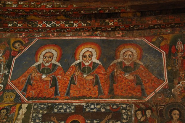 Auf den nächsten Bildern sieht der geneigte Betrachter Zeichnungen aus dem Gebetsraum eines gewissen Daniel, dessen Heiligenstatus ich vergessen habe. Zu diesem Gebetsraum ist zu sagen, dass er nur über einen zum Teil direkt am Abgrund gelegenen kurzen felsigen Weg erreichbar war und ich ihn als einzige unserer Minigruppe besichtigen konnte. Meine Familie würde es im Leben nicht glauben, was ich als personifizierte Höhenangst getan habe und mir selber ist es auch noch nicht klar … keine Ahnung, was sie einem hier in den Kaffee tun.